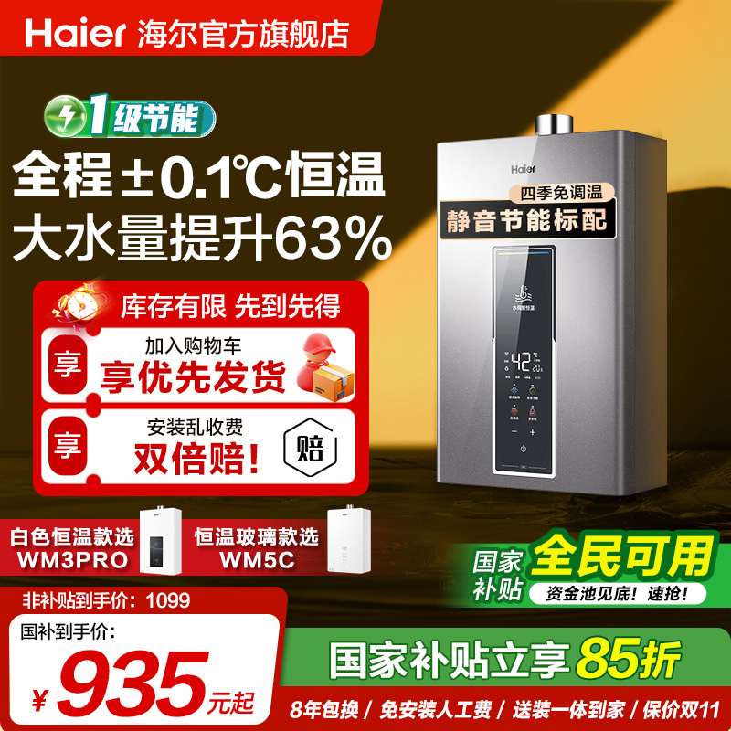 [政府补贴]海尔燃气热水器天然气13L16升WM5家用水伺服恒温款官方 JSQ30-16WM5DPWCU1星蕴银