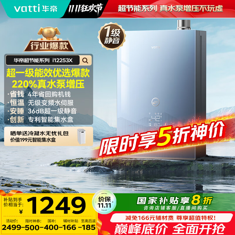 华帝(VATTI)【升级220%增压+一级能效+一级静音】国家补贴20% 水伺服恒温节能16升燃气热水器天然气i12253X-16