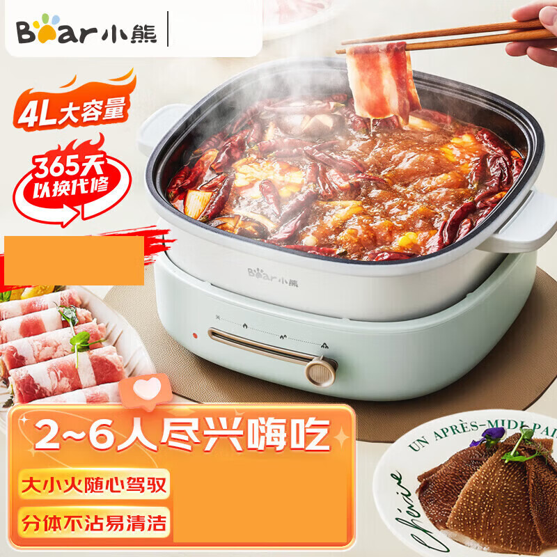 小熊(Bear)电火锅 电炒锅 电煮锅家用多用途锅 火锅专用锅多功能电热锅宿舍大容量多功能锅 DHG-C40V2 4L 4L 【分体大容量便捷拨杆调温】