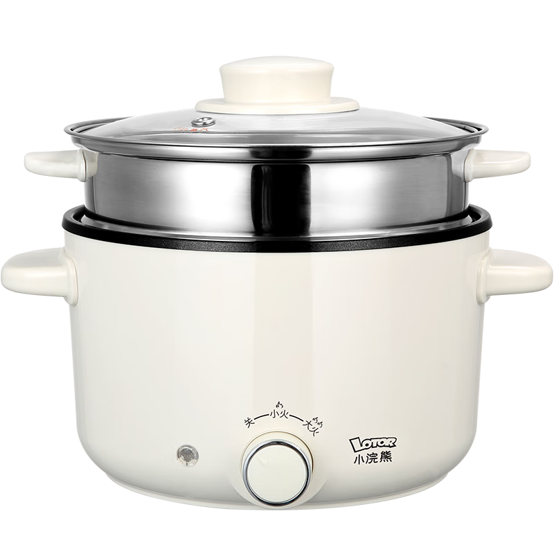 百亿补贴:小浣熊 电炒锅迷你宿舍泡面锅多功能电煮锅小电锅分体式一人用多用途电热锅1.8L 米白色蒸笼款 1.8L