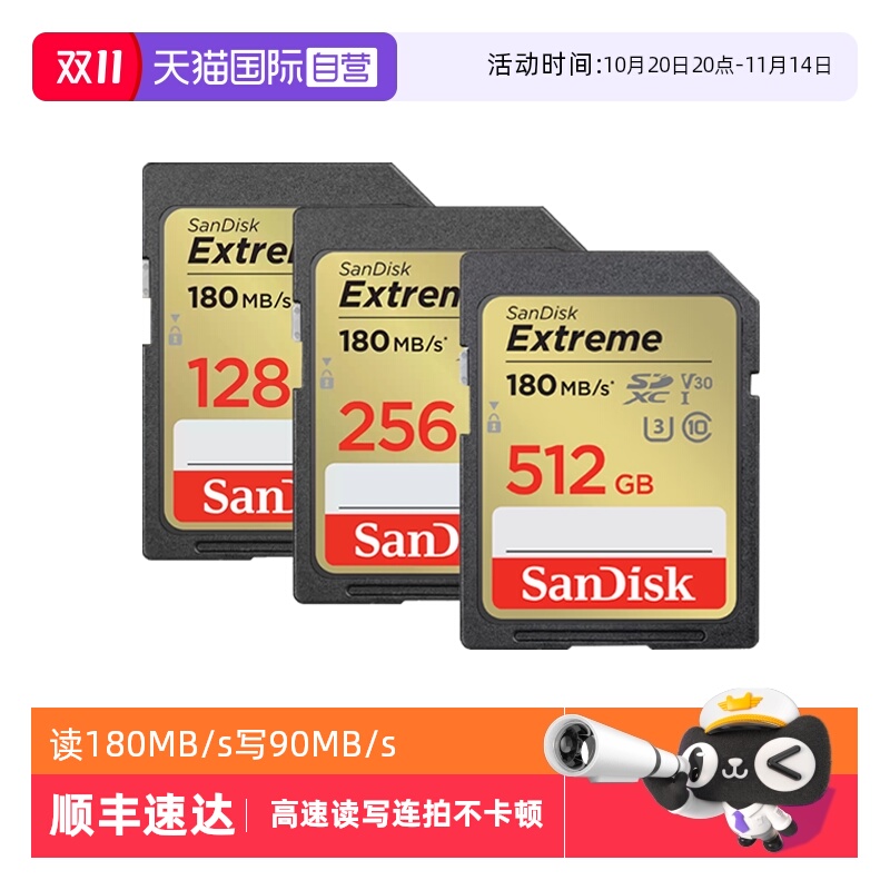 【自营】闪迪SD卡128G/256G 内存卡佳能尼康单反相机摄像机存储卡