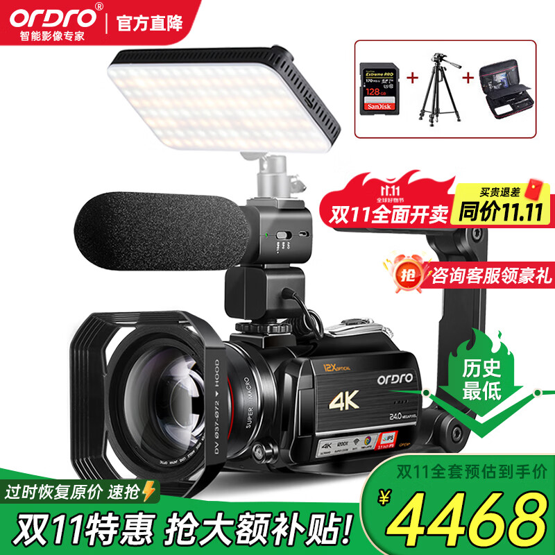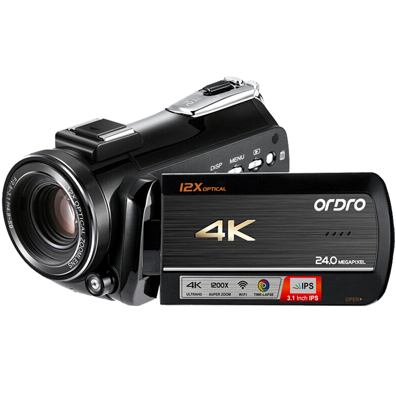 欧达(ORDRO)AC5 4K摄像机专业直播摄影机高清数码dv录像机 vlog短视频设备 12倍光学变焦 家用会议旅游便携