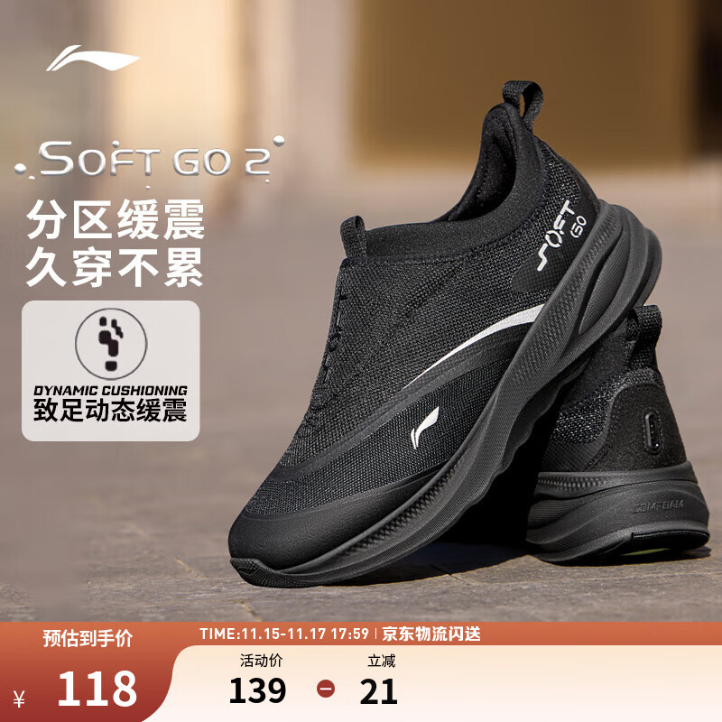 黑色 41 李宁SOFT GO 2男懒人运动休闲鞋