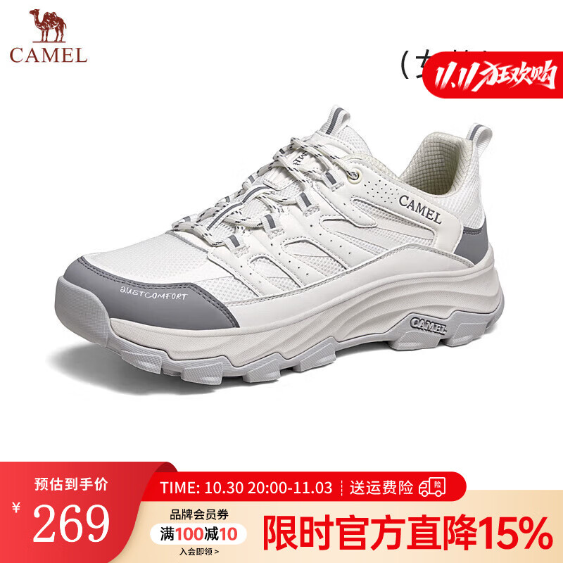 骆驼(CAMEL)男鞋 春夏季新款轻盈便捷时尚鞋网面透气徒步休闲运动鞋男会员 G24A342602 本白/灰【密网款】 女 37