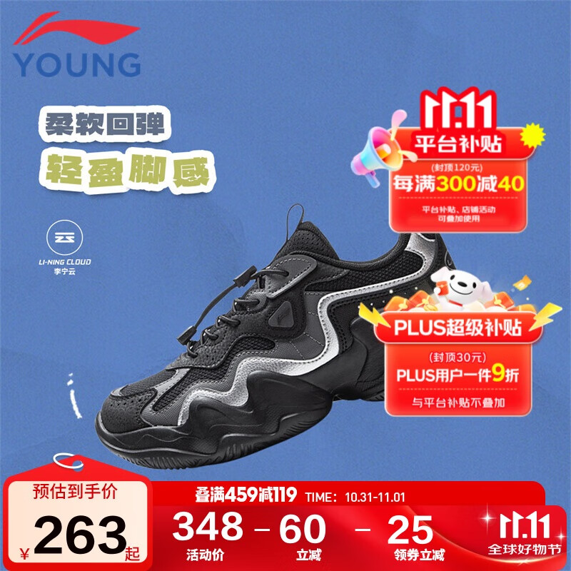 李宁童鞋儿童运动鞋男大童异星反光云科技回弹童休闲鞋37YKCV250-1