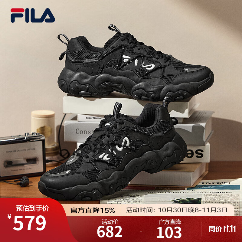 FILA斐乐男鞋运动鞋复古猫爪6老爹鞋2025秋季新款厚底休闲鞋轻便跑鞋 黑-BK 42
