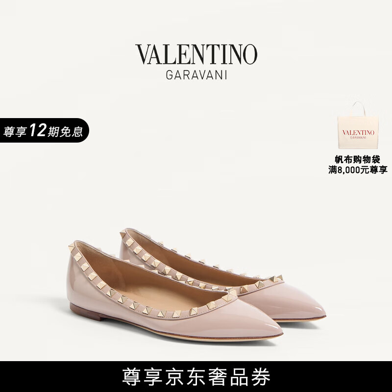 华伦天奴VALENTINO女士 ROCKSTUD 漆皮铆钉芭蕾平底鞋女鞋 粉色 38 (偏大半码)