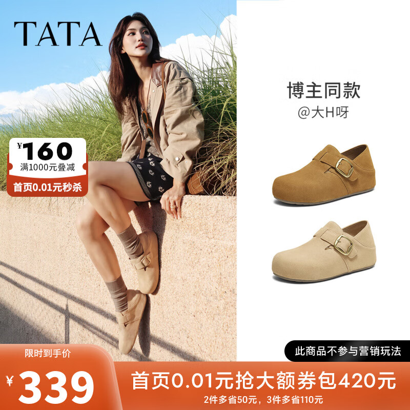 浅杏 34 TATA他她复古勃肯鞋女鞋子软底浅口平底单鞋玛丽珍鞋新款GLA01AQ5