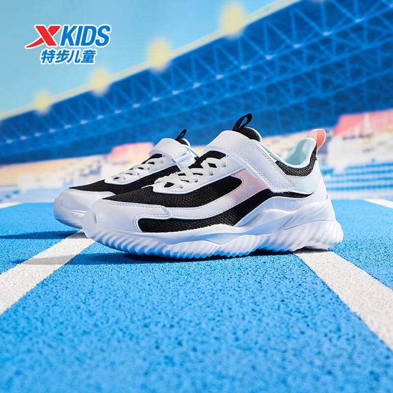 特步童鞋儿童跑鞋女童中大童防滑缓震运动跑鞋简约百搭运动跑鞋 黑/特步白/泡沫蓝2 36