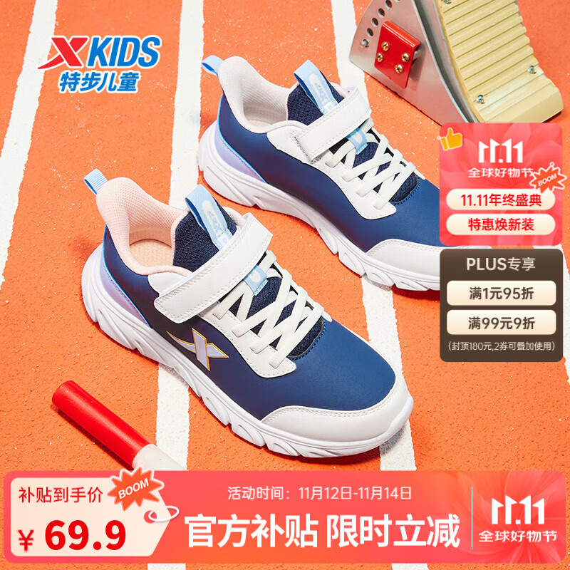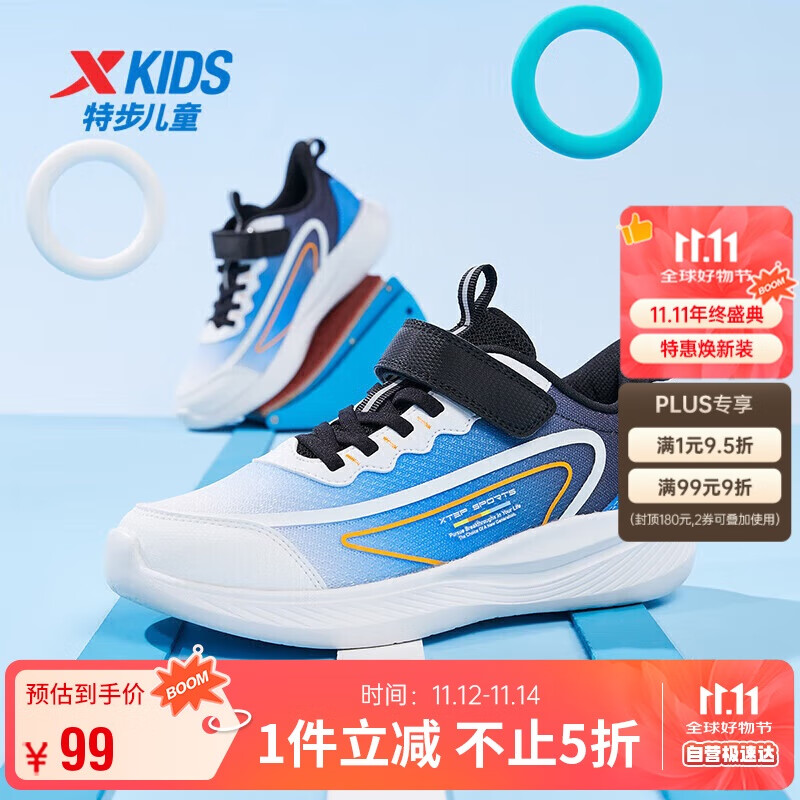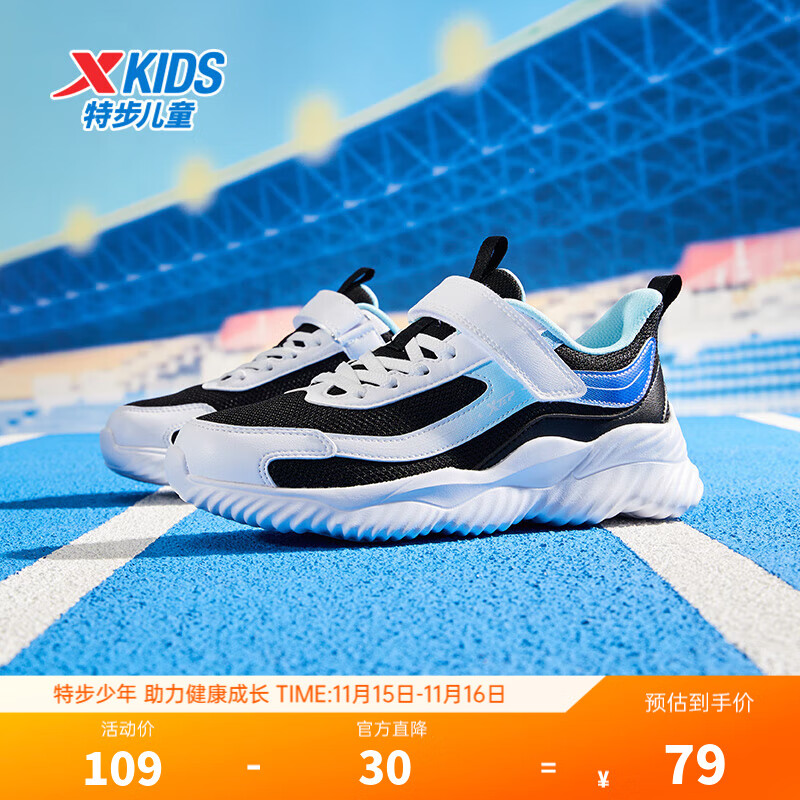 【优惠价】【瞬影】特步童鞋秋季新款儿童运动鞋男童跑步鞋中大童旋纽扣鞋子