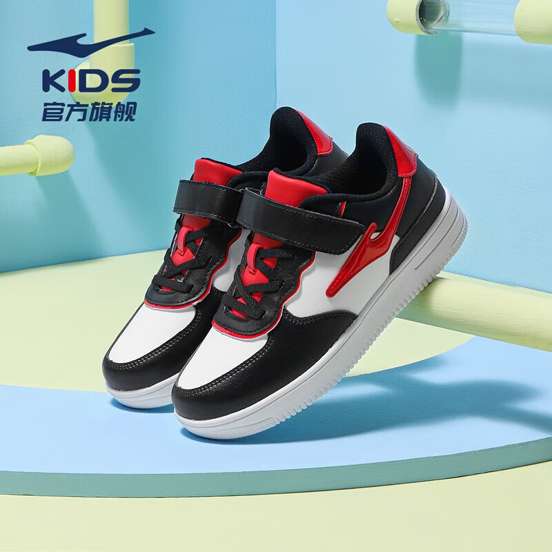 鸿星尔克(ERKE)童鞋儿童板鞋男童女童小白鞋秋季轻便透气休闲运动鞋百搭休闲 正黑/正白 -偏小1码 34
