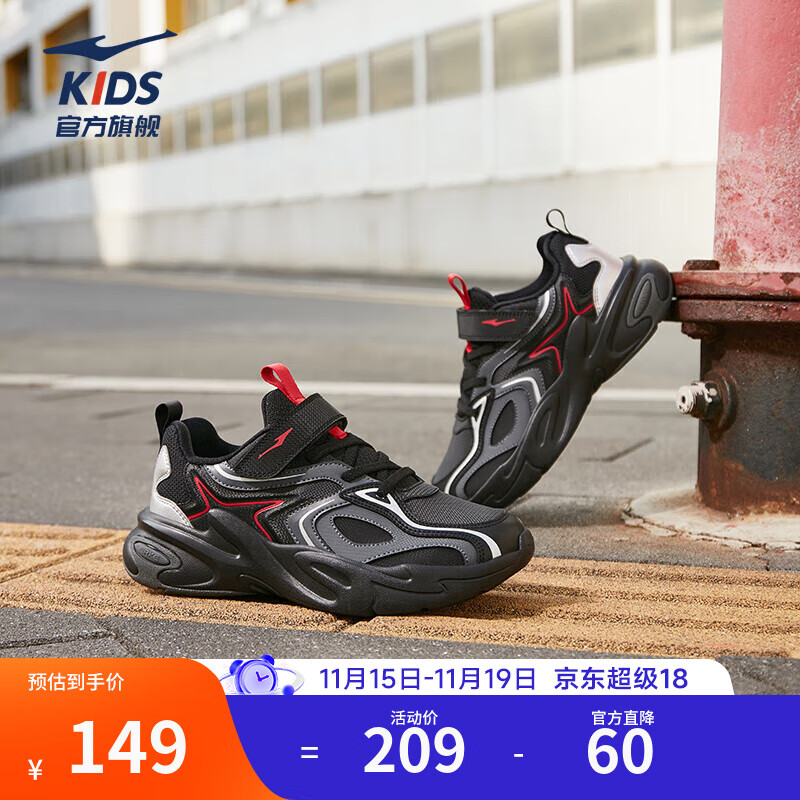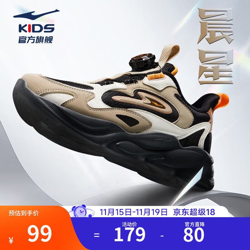 鸿星尔克儿童鞋男童鞋跑鞋中大童秋季休闲鞋儿童运动鞋丨晨星 正黑/浅亚麻 -偏小1码 38