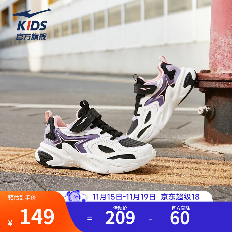 鸿星尔克童鞋儿童休闲鞋大小童男童休闲运动鞋跑鞋|星耀2 正黑/微晶白/矿物紫 37