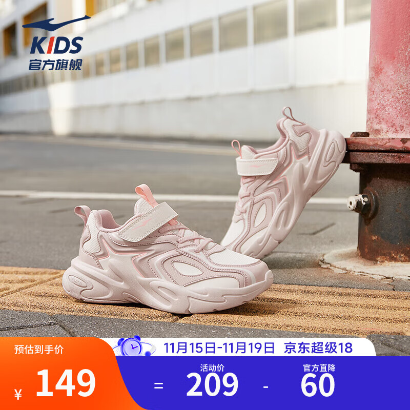 鸿星尔克童鞋男童运动鞋冬季女童休闲跑步鞋儿童运动鞋丨川行3 正黑/蜜桃橙粉/微晶白 35