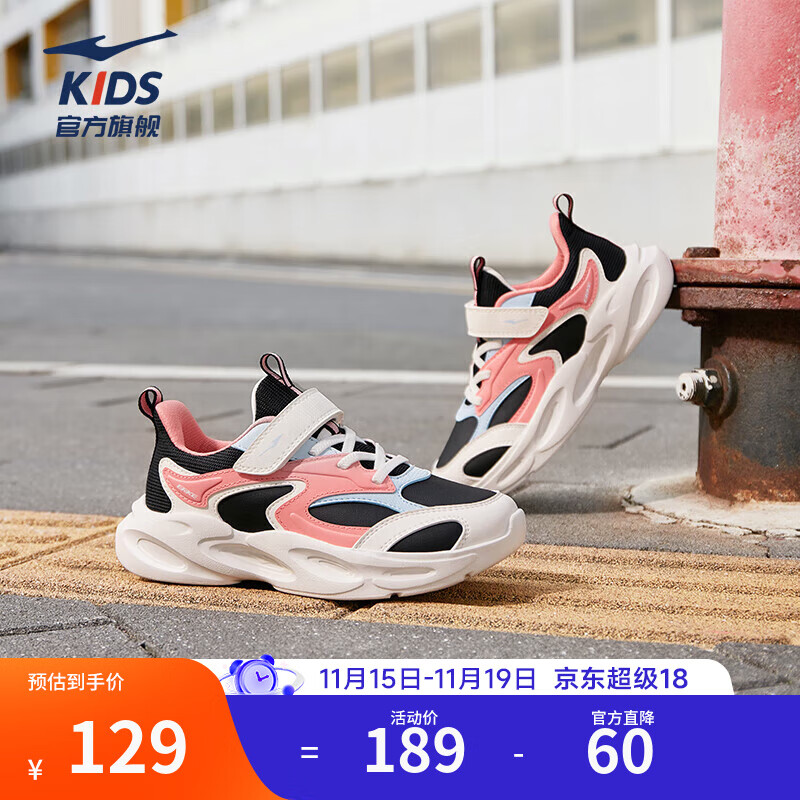鸿星尔克童鞋男童运动鞋冬季女童休闲跑步鞋儿童运动鞋丨川行3 正黑/蜜桃橙粉/微晶白 35