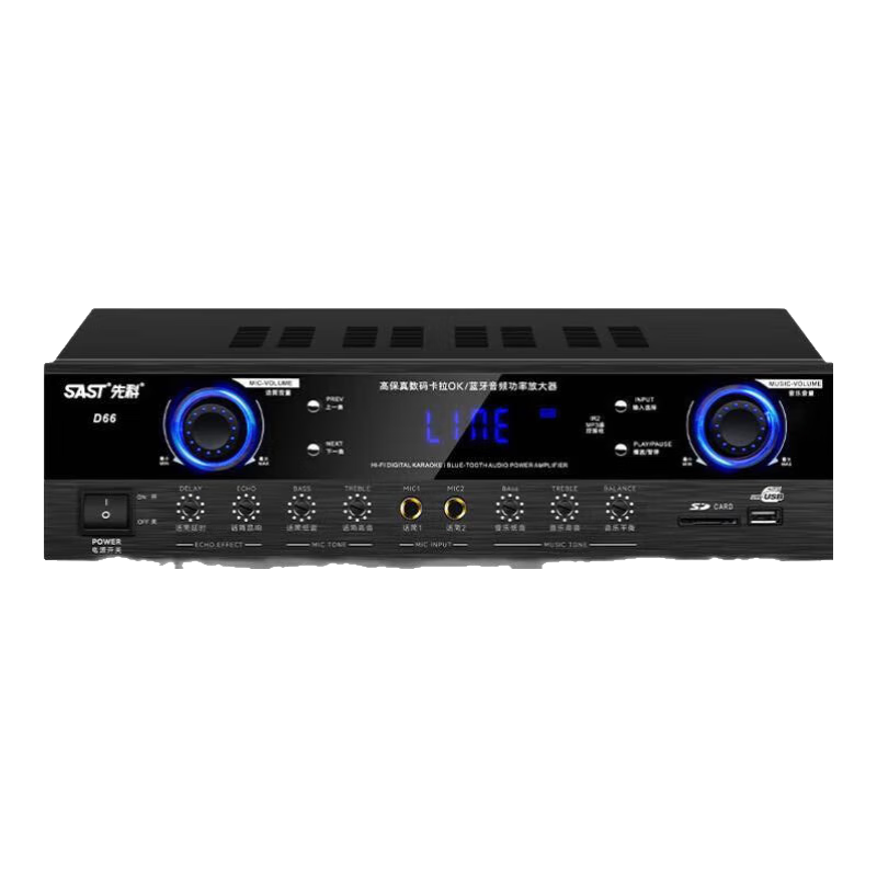先科专业大功率功放机家用会议室酒吧舞台KTV发烧级av音乐hifi音乐前级纯后级功放音响小型蓝牙功放机 D66-80W*2