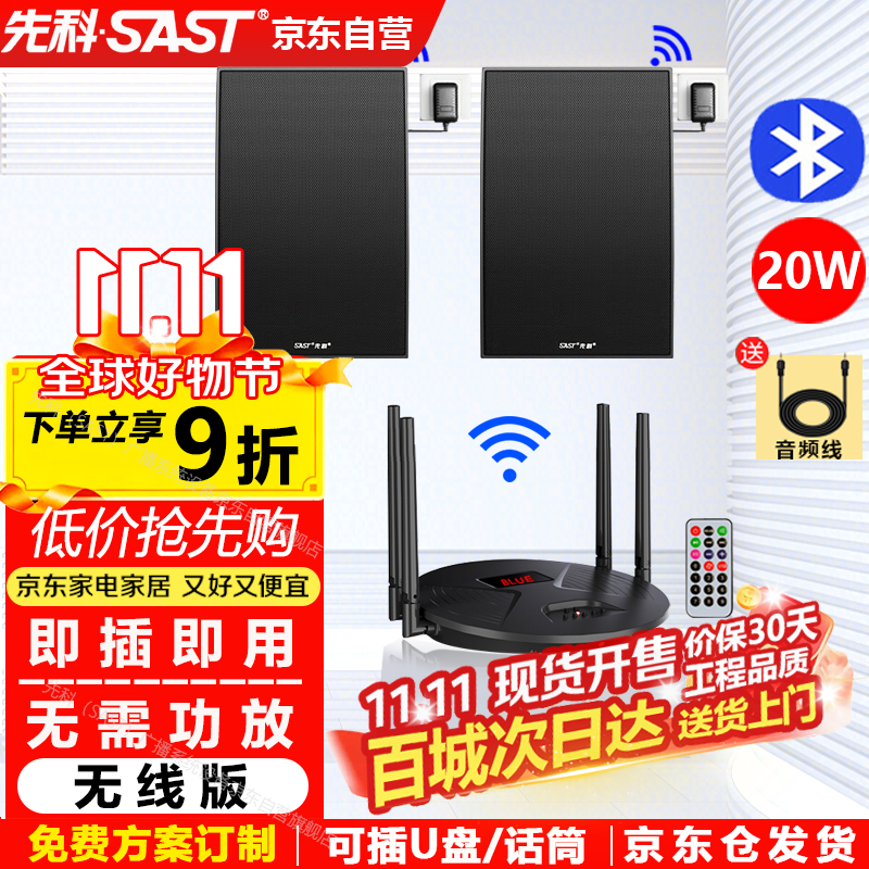 先科(SAST)无线蓝牙壁挂音响套装 20W超市店铺教室会议室内挂墙式背景音乐公共广播喇叭系统挂壁音箱一拖二