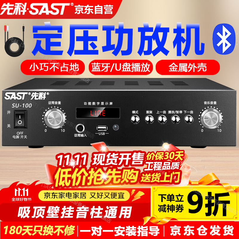 先科(SAST)SU-100大功率蓝牙定压功放机迷你公共广播放大器吸顶音响壁挂音柱喇叭U盘门店会议室家庭影院组合
