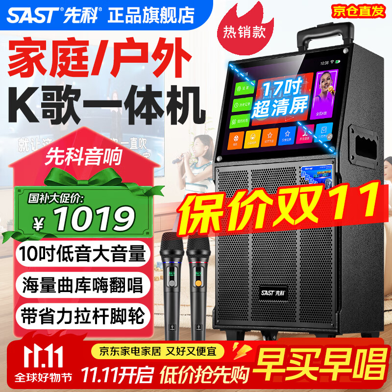 先科家庭ktv音响套装点歌机功放一体机家用卡拉ok户外k歌唱歌全套设备广场舞音响带显示屏低音炮麦克风 【携带便捷-仅20斤】10吋低音17吋触屏+双话筒