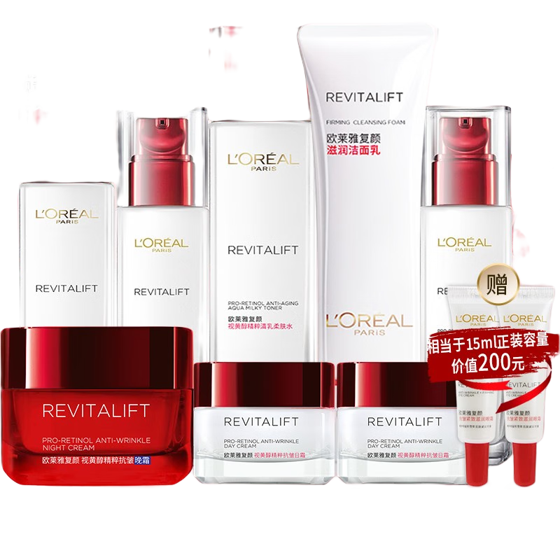 百亿补贴:欧莱雅(LOREAL)护肤品套装化妆品全套复颜抗皱淡纹水乳洗面奶面膜生日礼物礼盒 【十全十美10件套礼盒】