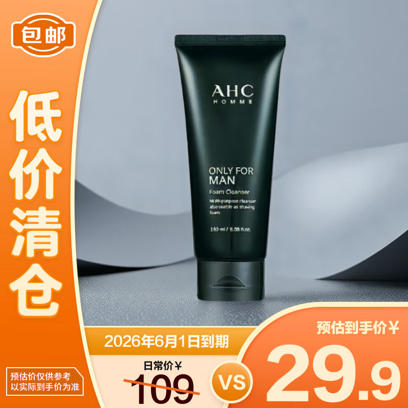 AHC爱和纯男士平衡舒缓深层清洁洗面奶180ml【临期清仓】