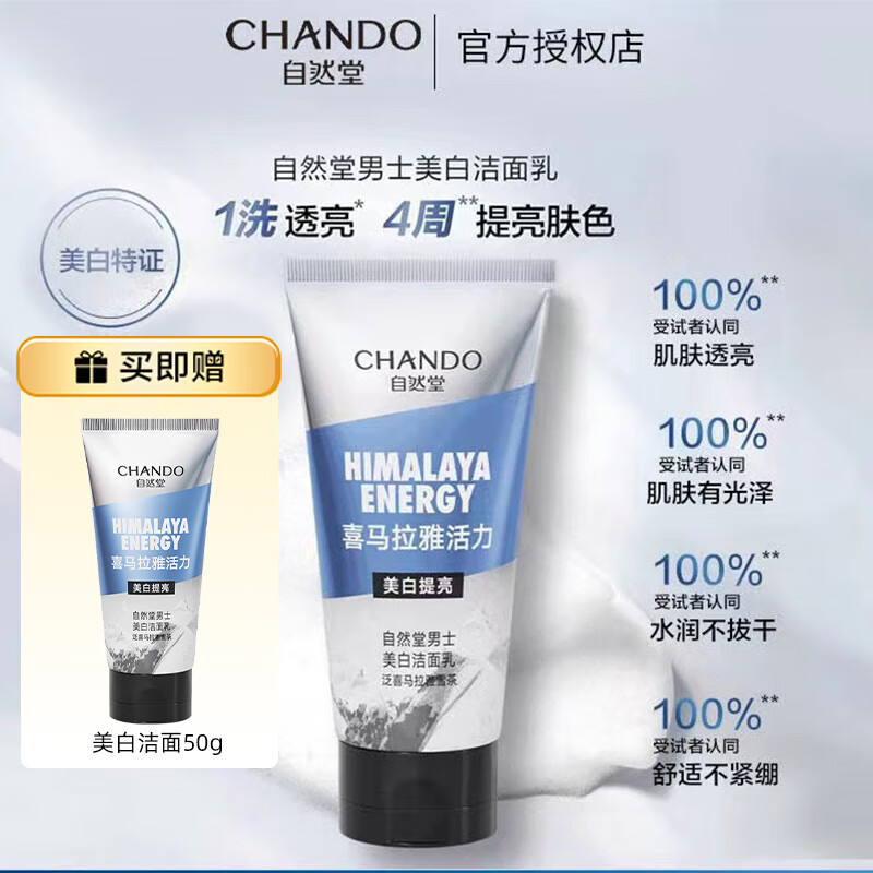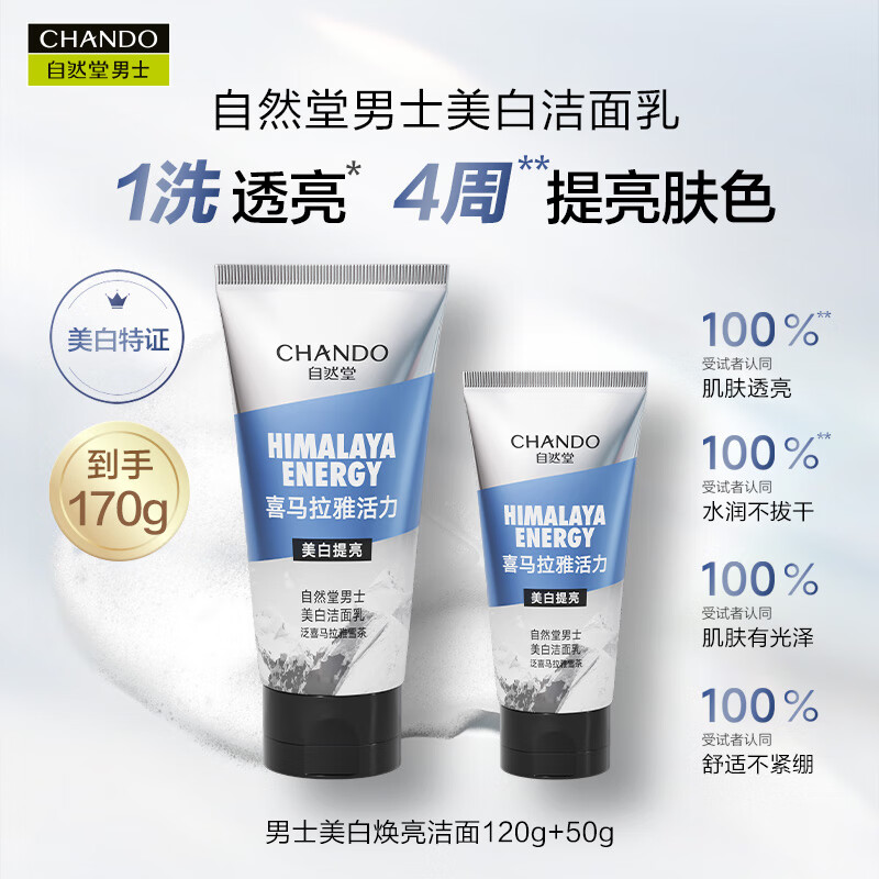 自然堂男士洗面奶 喜马拉雅洁面膏 洗面奶护肤品(控油去黑头深层清洁) 美白焕亮洁面 170g