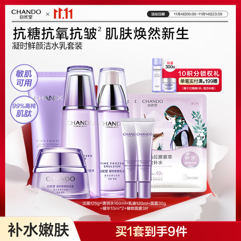 CHANDO/自然堂 凝时鲜颜 护肤套装 洁面125g+水160ml+乳120ml