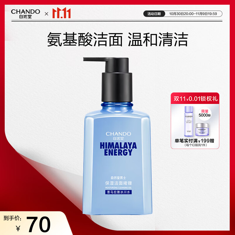 百亿补贴:自然堂(CHANDO)男士喜马拉雅冰川滋润保湿护肤品套装洗面奶保湿露520情人节礼物 洁面160ml+保湿露70ml
