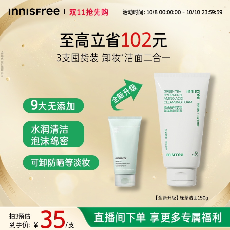 【自播专属】悦诗风吟绿茶洗面奶控油保湿氨基酸洁面