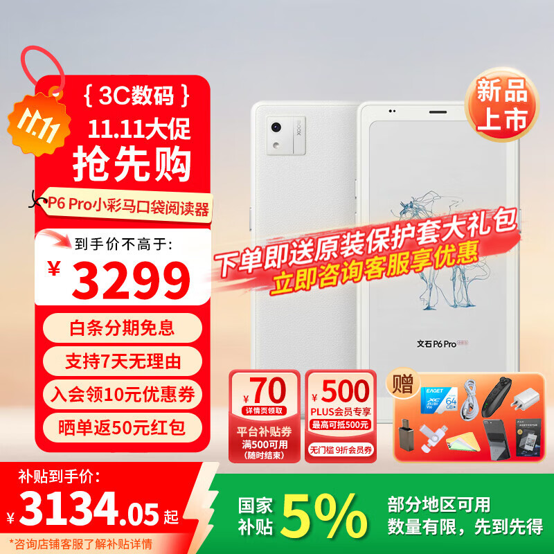 BOOX【送原装保护套】文石P6Pro小彩马彩色电子书阅读器电纸书墨水屏平板小屏阅读器便携口袋阅读览器 小彩马官方标配【月霜白]+送保护套大礼包
