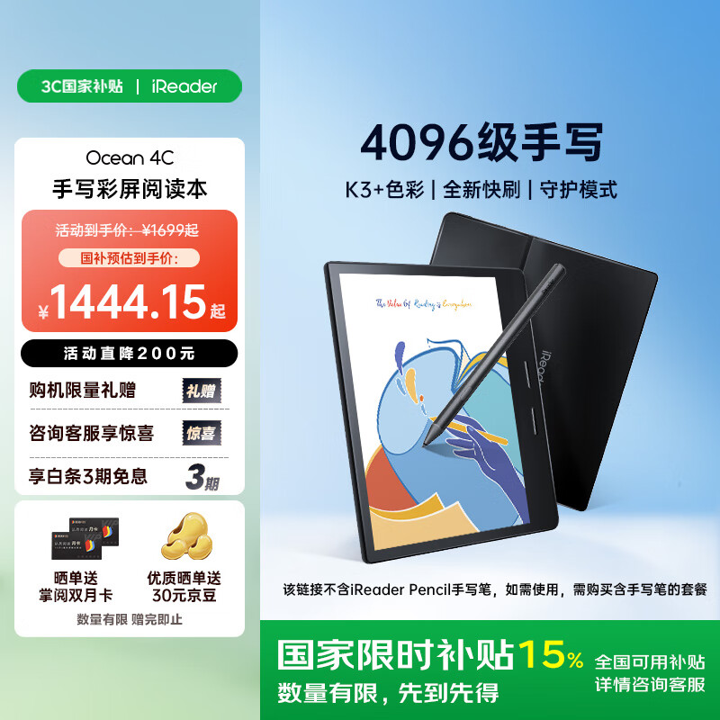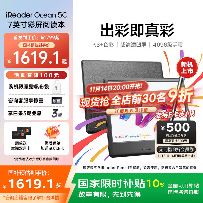 掌阅(iReader)Ocean 4C【国家补贴】7英寸彩色墨水屏 电子书阅读器 轻薄便携阅读电纸书 手写平板学习笔记办公本