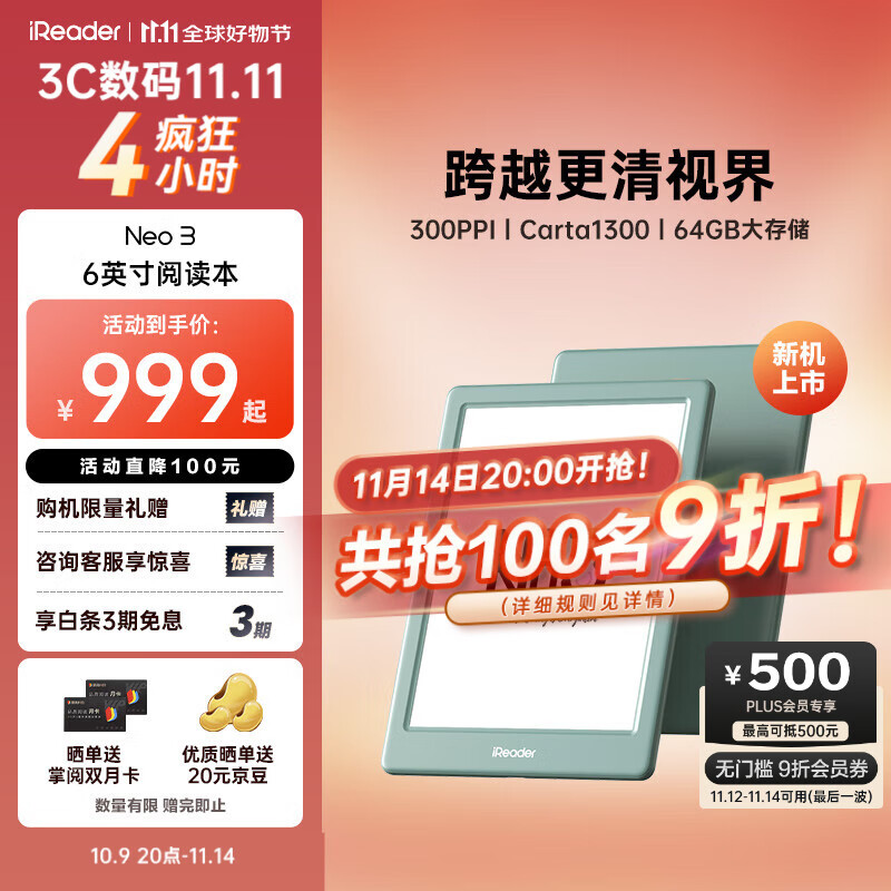 掌阅(iReader)【新品发布】Neo3 6英寸电子书 智能阅读器 墨水屏电纸书 看书学习漫画平板电脑 轻薄便携 语绿