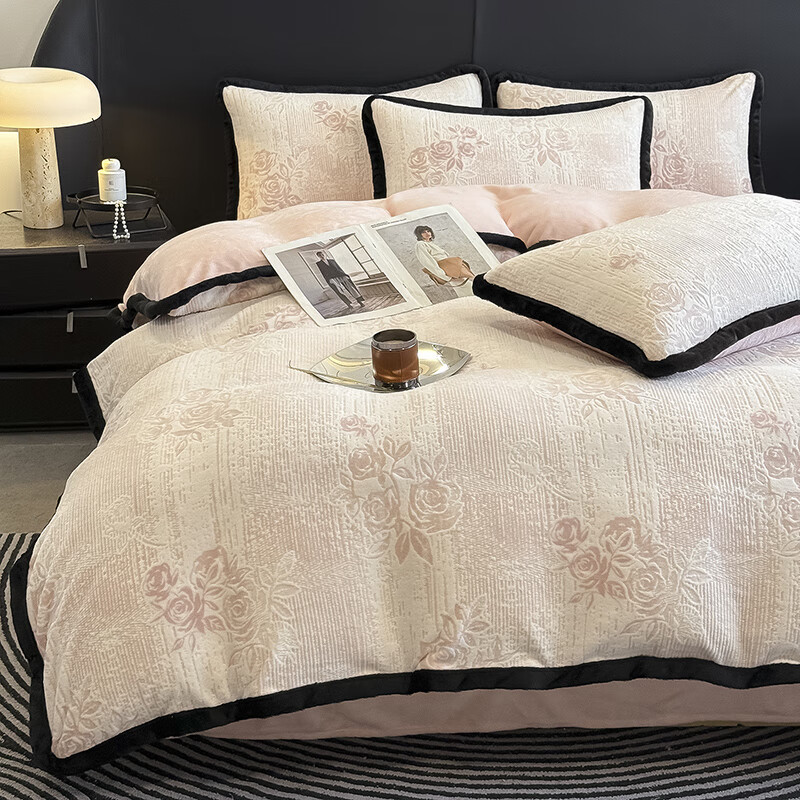 途波列高克重加厚宽边雕花秋冬四件套牛奶绒保暖被套床单加绒床品四件套 寻觅花影-LM 1.8床 床单款 (被套200*230cm) 套件