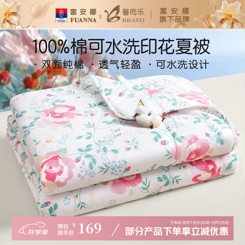 富安娜(FUANNA)出品馨而乐纯棉空调被芯四季被夏被薄被子暖气被可水洗学生宿舍 春之颂【100%新疆棉 可机洗】 1.5m床适用(203*229cm)