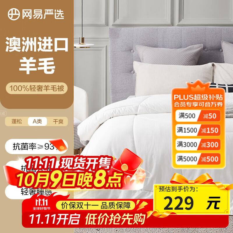 网易严选100%澳洲羊毛被轻奢款全棉被套蓬软轻盈干爽A类抗菌 四季被1.5x2m(适合1.2m床)