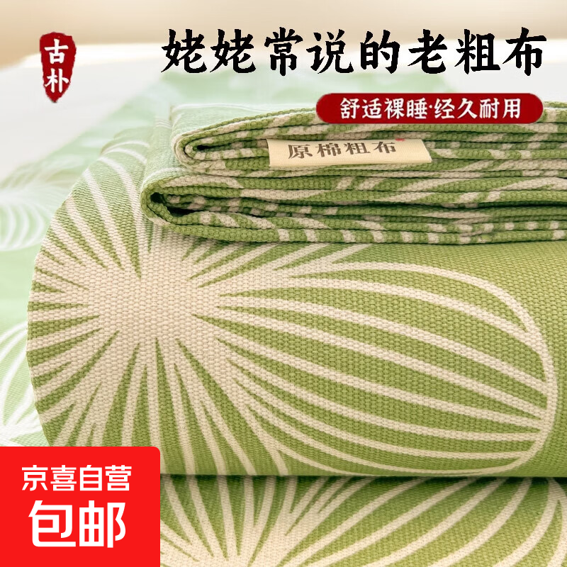 加厚老粗布单品床单单件学生宿舍全棉纯棉被单棉麻亚麻四季通用 花清舞绿 120*230cm单床单