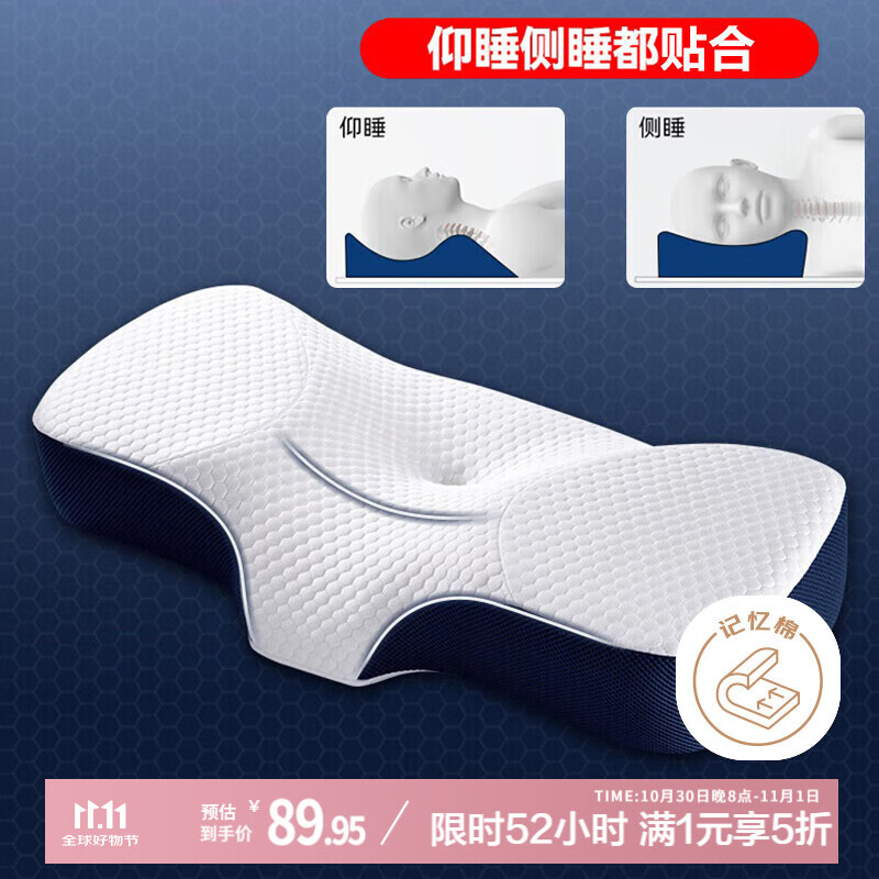 艾薇颈椎枕记忆棉枕头富贵包睡眠专用颈椎按摩器枕芯 一只装 豪华蓝