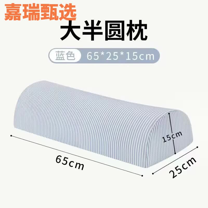 阿马福云泰国天然乳胶圆柱抱枕泰国天然乳胶圆柱护颈枕颈椎枕 小圆枕长条 大半圆【65*25*15·cm 条纹蓝】