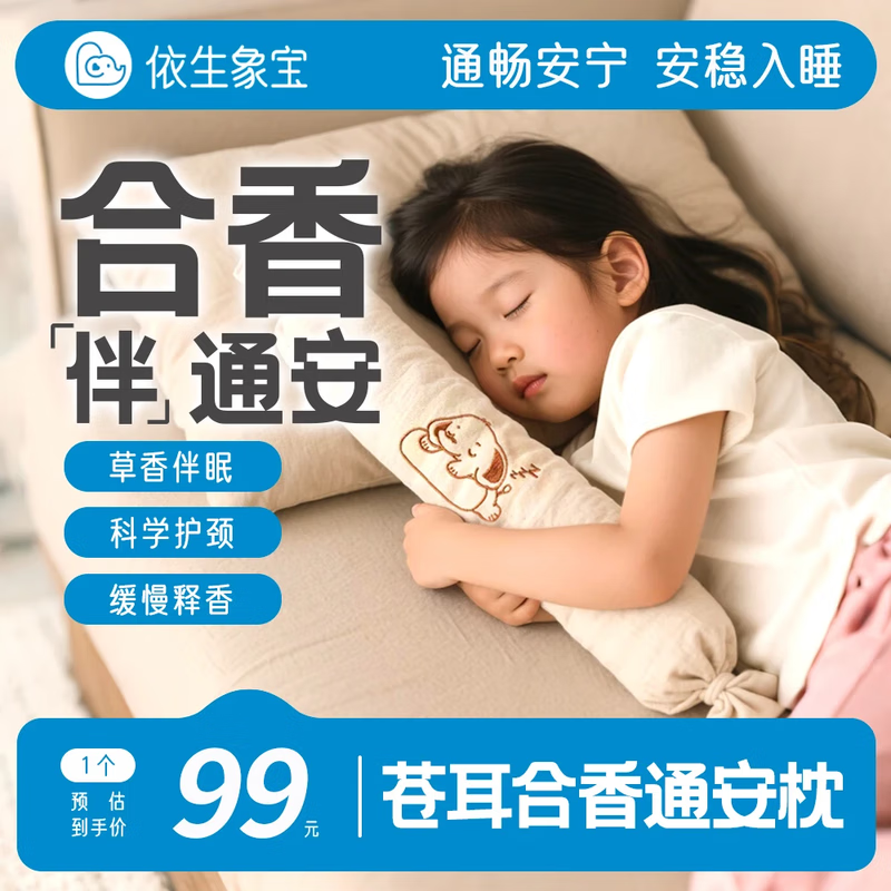 依生象宝非遗合香枕非遗合香枕填充五福籽香丸安抚抱枕 宝宝安抚抱枕 依生象宝苍耳子通安枕单只38CM*6