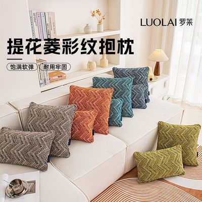 百亿补贴:罗莱菱形纹路沙发靠垫提花抱枕床头大靠背办公椅腰靠菱彩