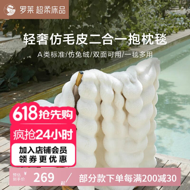 罗莱家纺毛毯仿毛皮靠垫毯子保暖办公室居家午睡毯抱枕二合一 轻奢仿毛皮二合一抱枕毯 奶白色 98*140cm