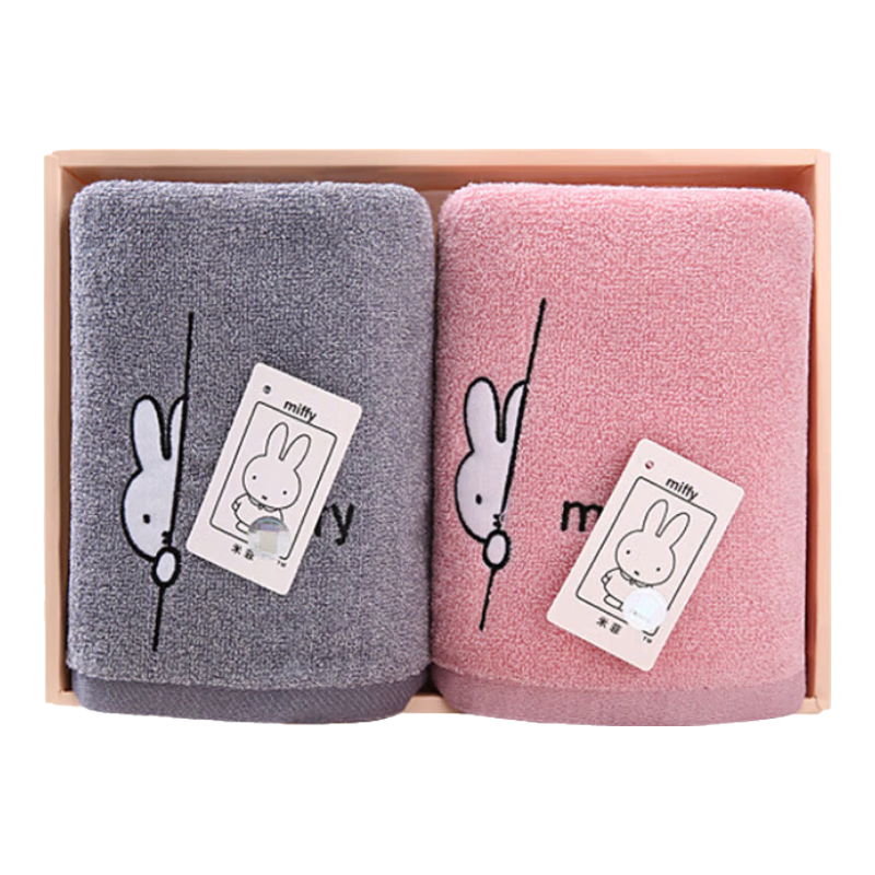 金号 米菲A类纯棉绣花面巾2条装毛巾礼盒 柔软吸水 72*34cm 含手提袋