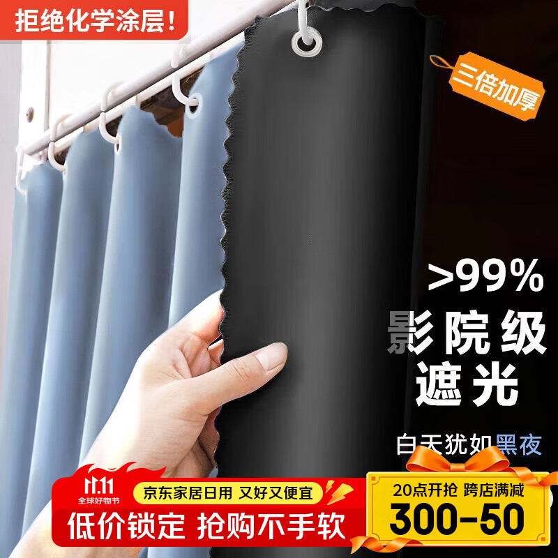 百亿补贴:金蝉新款北欧简约加厚隔热防晒隔音窗帘高档客厅卧室全遮光窗帘布