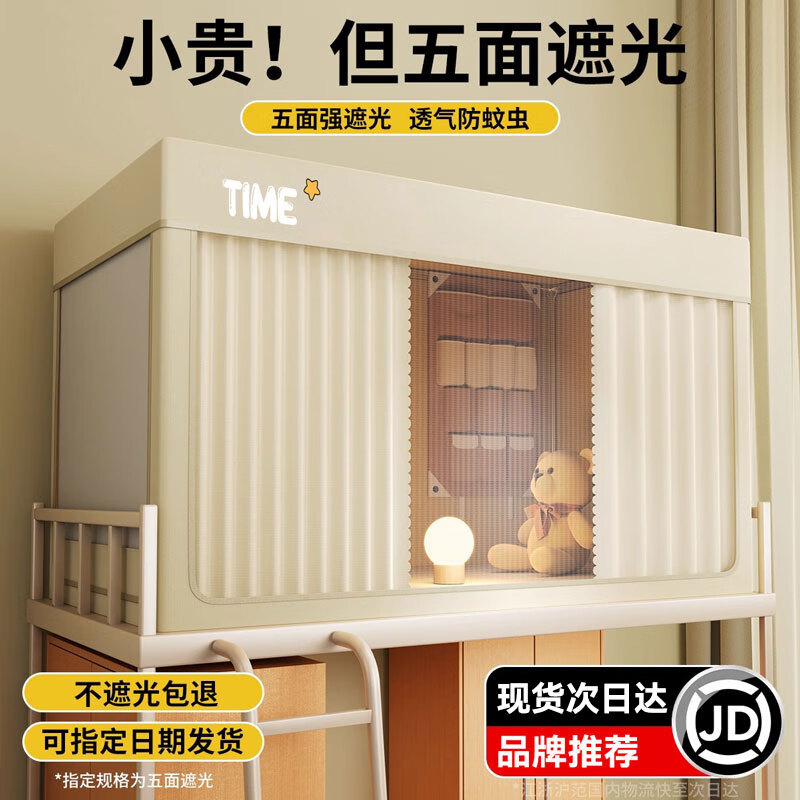 南极人(Nanjiren)大学生宿舍床帘上铺全遮光寝室床帘全封闭一体遮光帘宿舍窗帘全包 蘑菇屋【四面遮光 保护隐私】 90cm*190cm*110cm【上铺自连接】