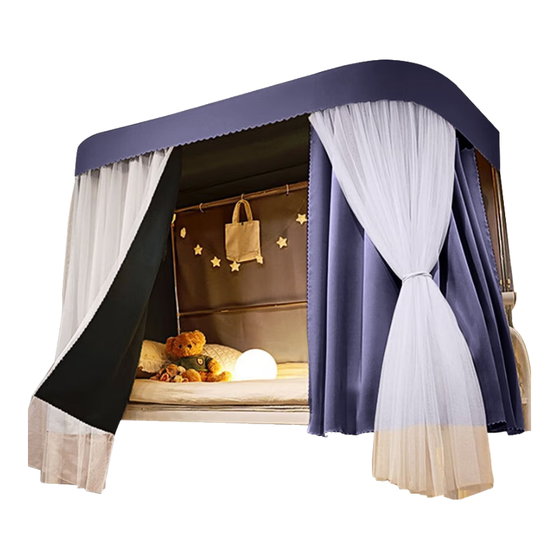 梦多福u型滑轨道大学生宿舍床帘上下铺蚊帐一体式护隐私强遮光寝室窗帘 藏青丨五面全包+帐纱+可升降支架 190cm*90cm 可调高100-140cm