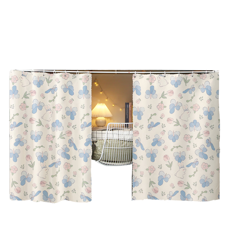学生宿舍遮光床帘下铺专用隐私床遮挡帘床围挡布单片挂布寝室窗帘 蝶花兔【送绳子挂钩】清仓 200cm*115cm 2片围三面