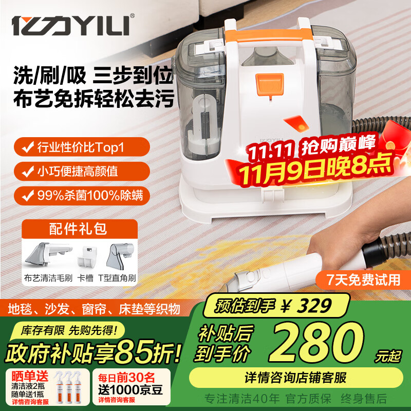 亿力【重磅】布艺清洁机地毯清洗机窗帘床垫沙发喷抽吸清洗神器 全屋清洁多功能家用电器6336 国家补贴