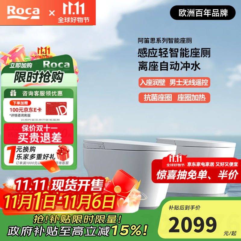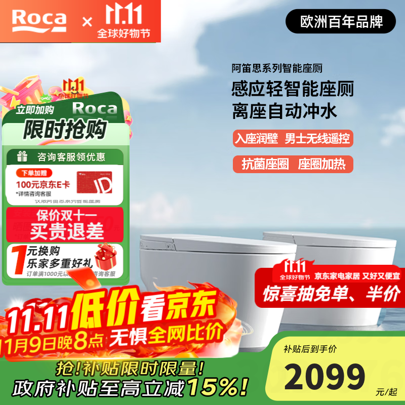 乐家(Roca)阿笛思智能马桶内置水箱冲水坐便器一体机小户型防臭无水压限制 Atis轻智能【标准版】 305/300mm