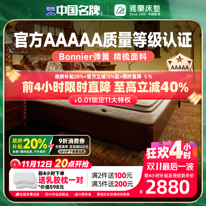 百亿补贴:【皇家花园】雅兰床垫2cm厚乳胶独袋弹簧席梦思主卧高端星级酒店