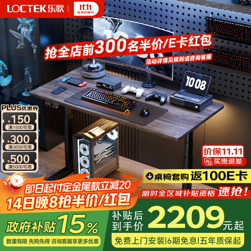乐歌政府补贴 黑武士max椭圆电竞电动升降电脑桌办公游戏桌1.2灰木纹